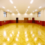 バレーコート3面、バドミントン6面、バスケット1面、卓球17台、ダンス鏡20枚、その他屋内スポーツに対応。