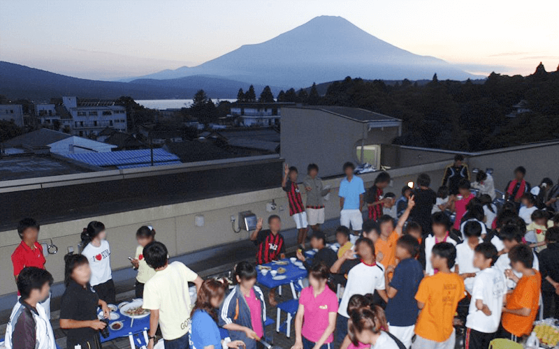 当館屋上で気軽に楽しめる人気のバーベキュー。開放感あふれる空間で、晴れた日には雄大な富士山や山中湖を望みながら、お仲間と楽しく特別なひとときをお過ごしいただけます。