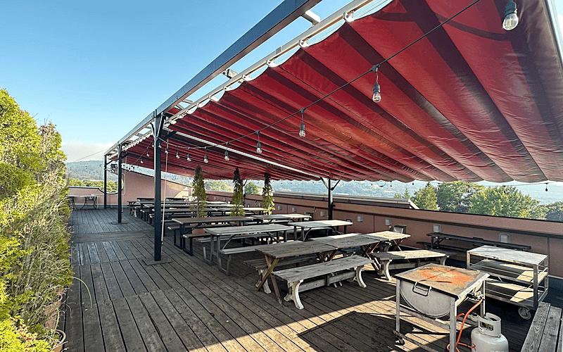 雨天でも使用可能な開閉オーニング新設