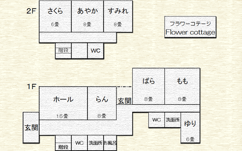 | フラワーコテージ (定員30名) 部屋タイプ&設備等 | 室数 | 定員 |